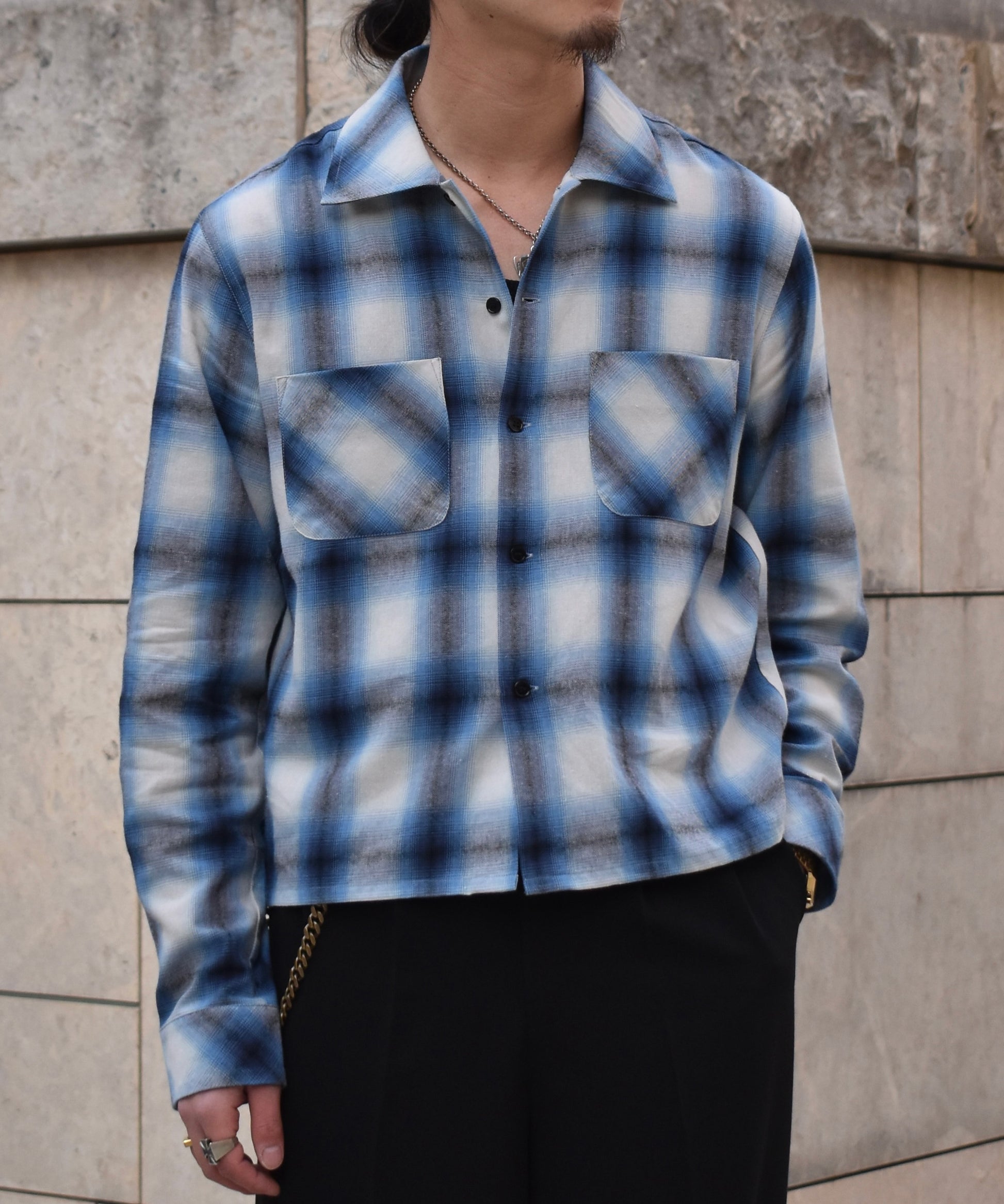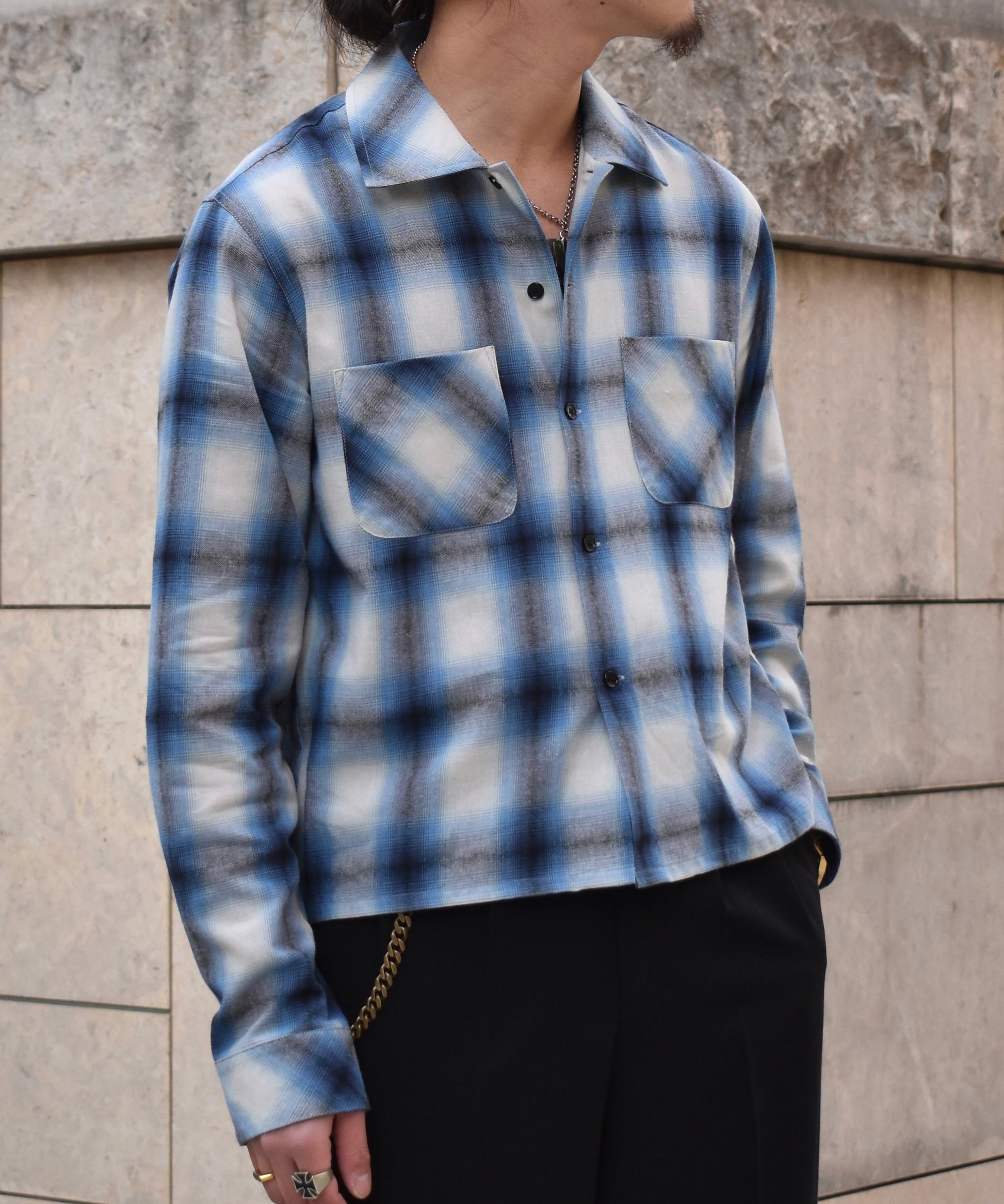 オンブレチェックシャツ[Blue]
