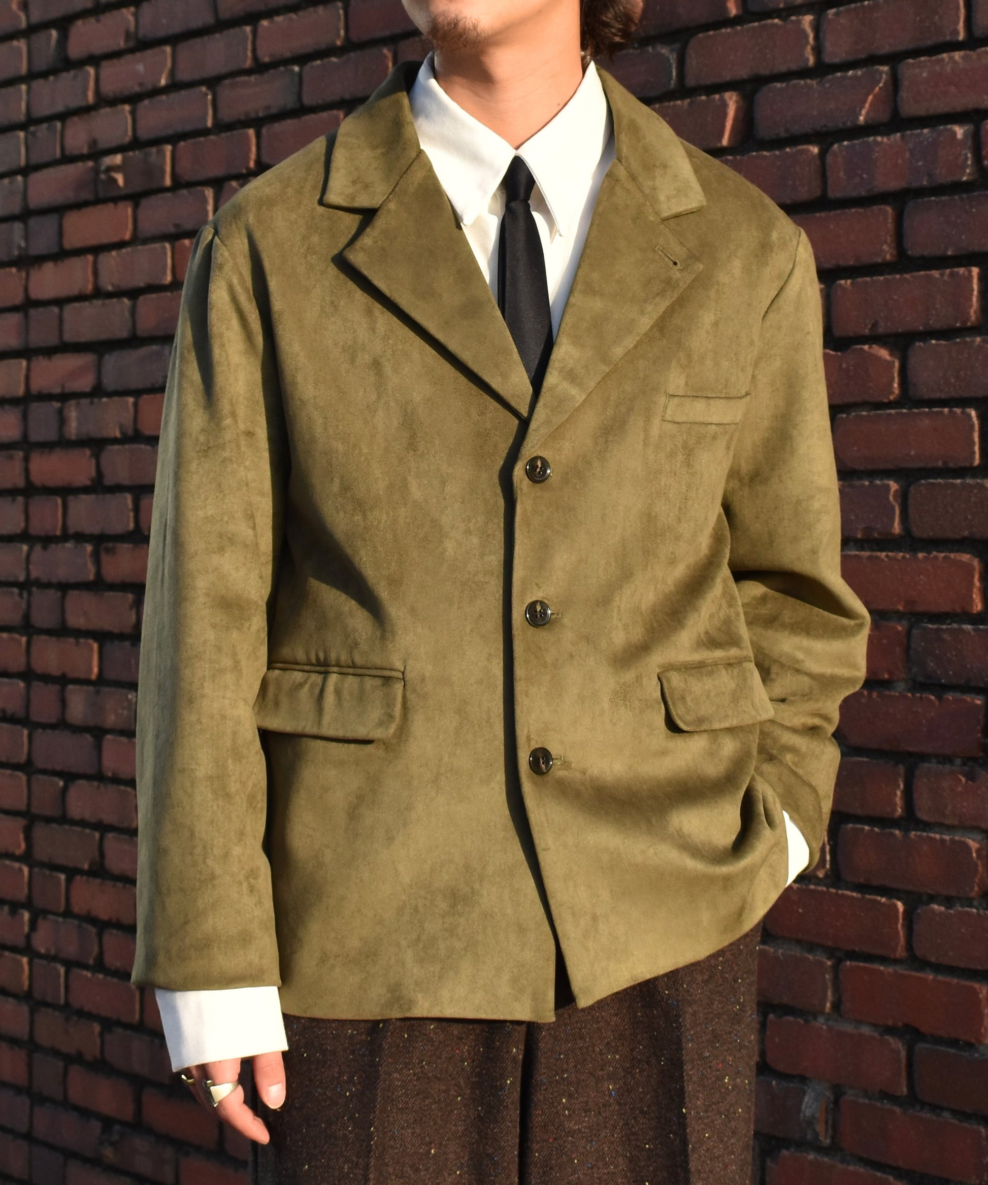 ・フェイクスエードテーラードジャケット[Khaki]/size M